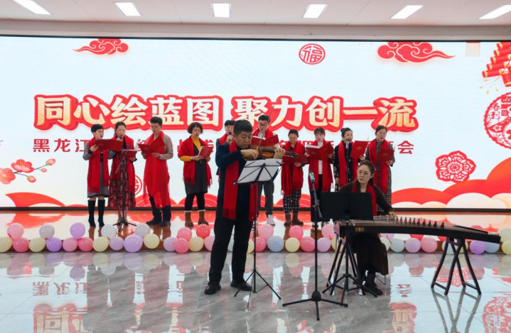 民革黑大支部原创的三句半《民革同心联谊,共颂黑大华章》,用轻松幽默的语言赞颂学校发展,展现出民革党员们服务大局、热爱黑大的真挚情怀。